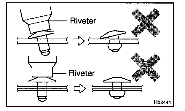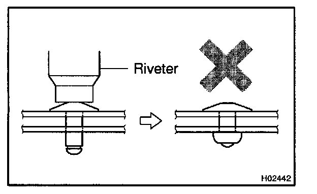 - Prizing the hole with a drill can lead to damage to the rivet hole or breaking the rivet cutter.