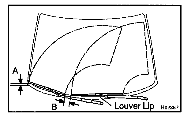 a. Remove the clip and RH cowl top ventilator louver, then disconnect the washer hose.