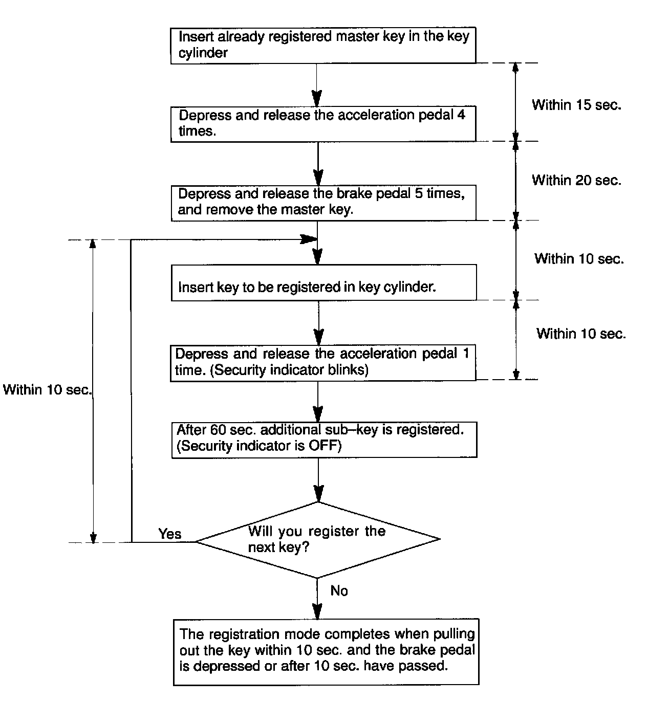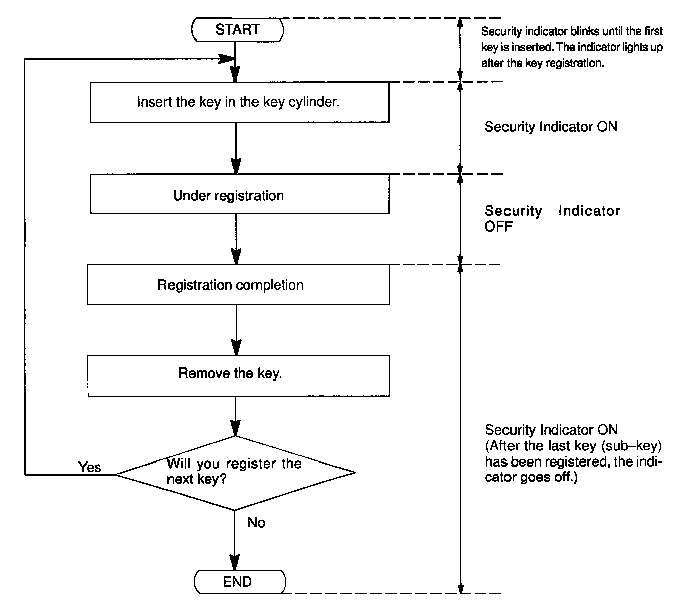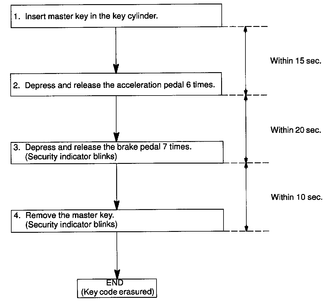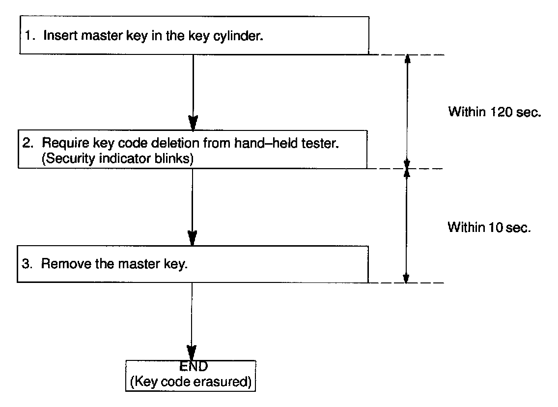 HINT: When the key cannot be pulled out in the step 4, key code deletion is canceled. (Security indicator is OFF)