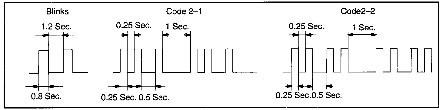 - When key code registration could not be performed in the automatic registration mode, code 2-1 is output from the security indicator and when inserting the already registered key, code 2-2 is output.