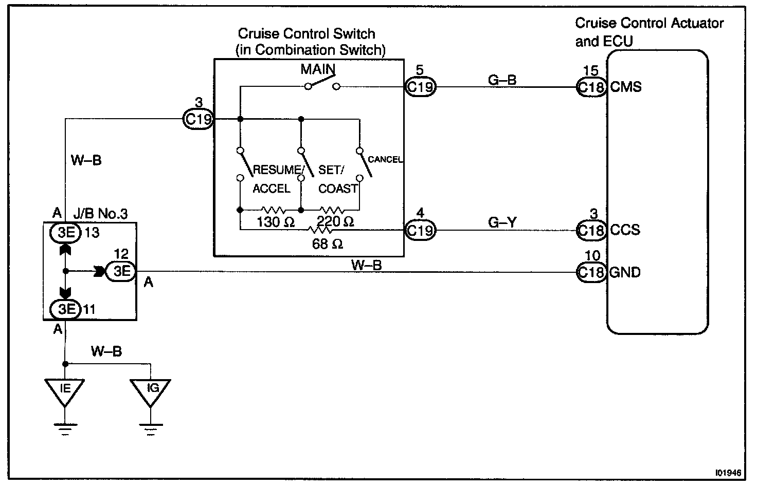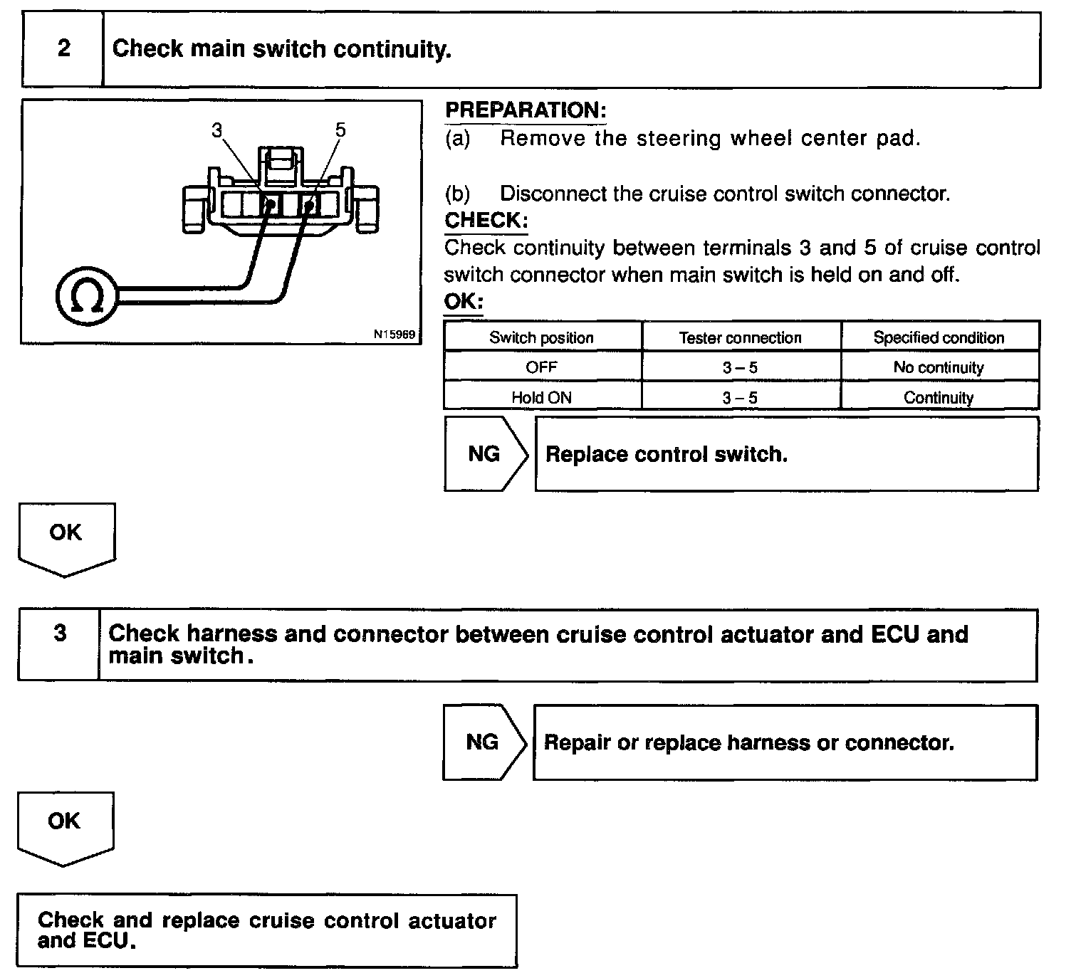 When the cruise control main switch is turned off, the cruise control does not operate.