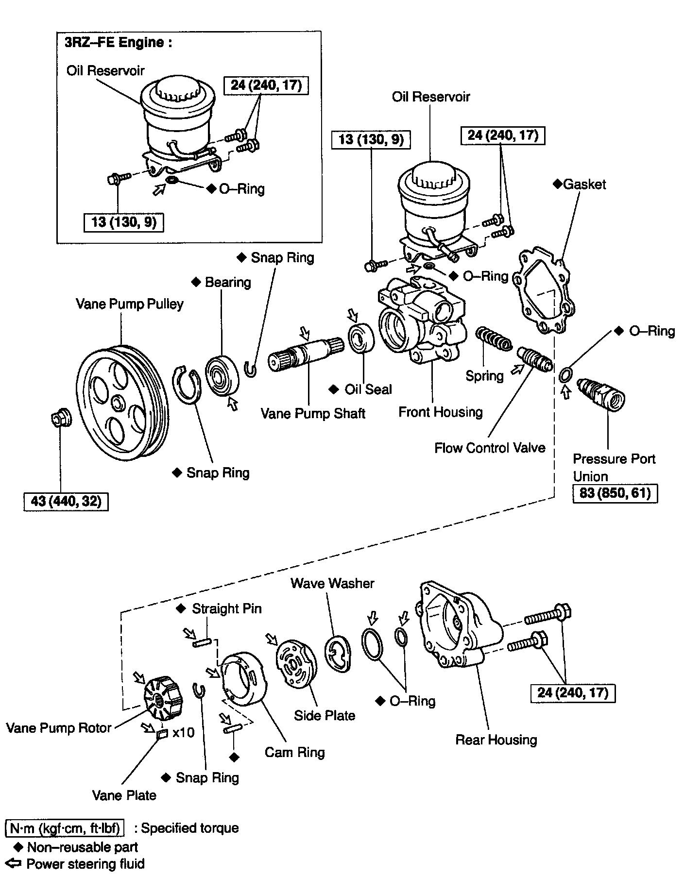POWER STEERING VANE PUMP REPLACEMENT AND OVERHAUL W/ RELATED COMPONENTS