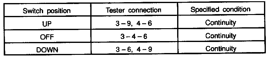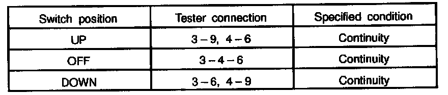 INSPECT POWER WINDOW SWITCH CONTINUITY
