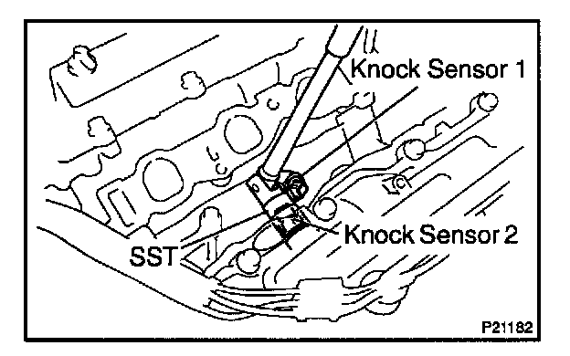 8. REMOVE KNOCK SENSORS Using SST, remove the knock sensor.