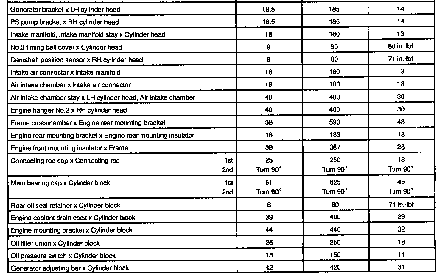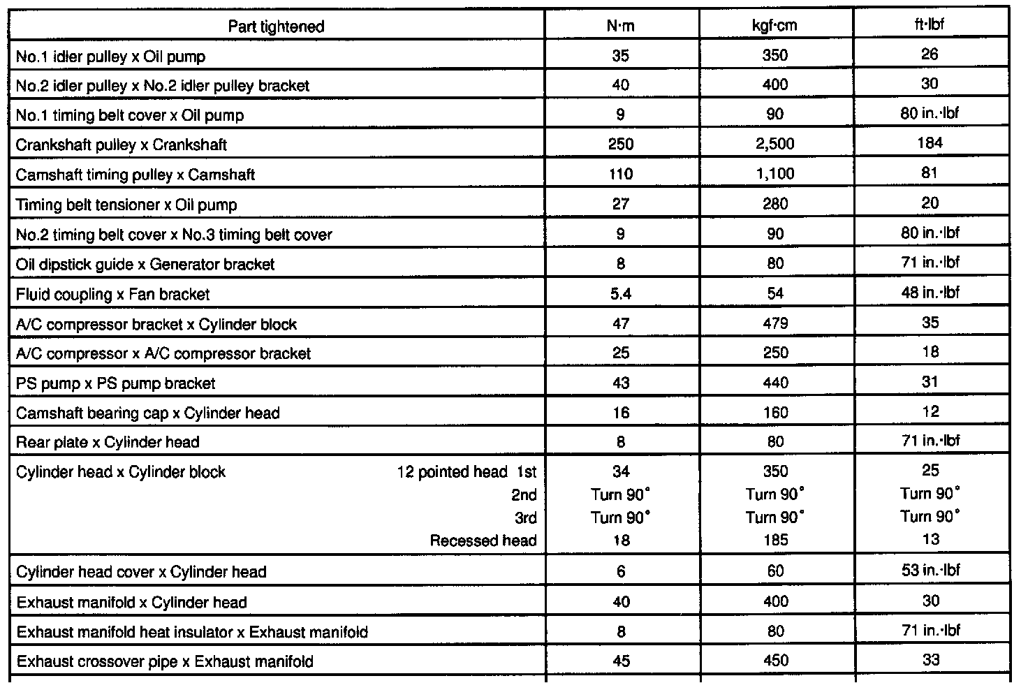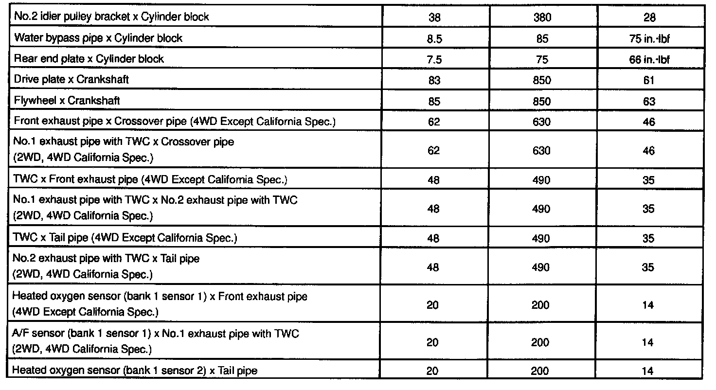 5VZ-FE Engine Mechanical Torque: