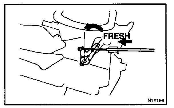 Pull the mode control link at "FRESH" position, connect the control cable and lock the clamp.