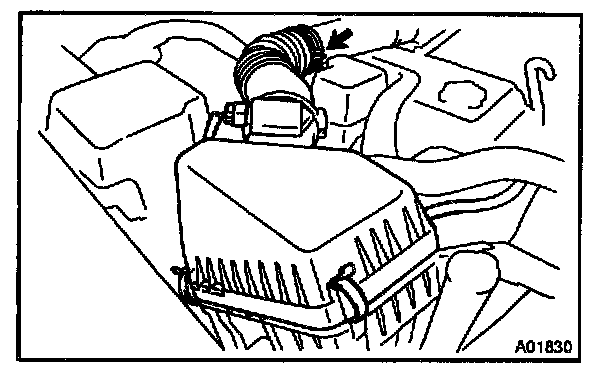 d. Loosen the 4 clips, and remove the air cleaner cap together with the MAF meter.