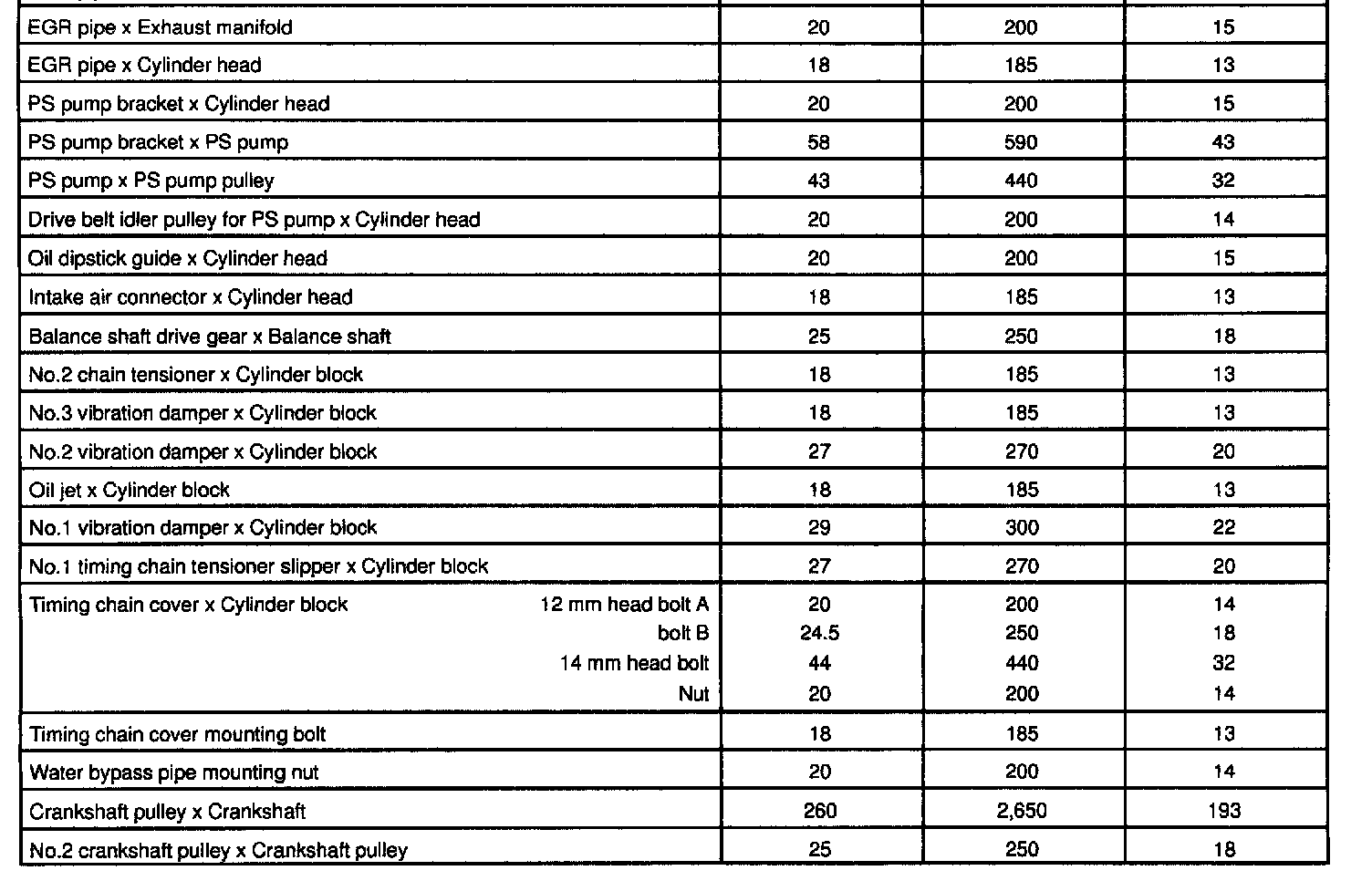 2RZ/3RZ Engine Mechanical Torque: