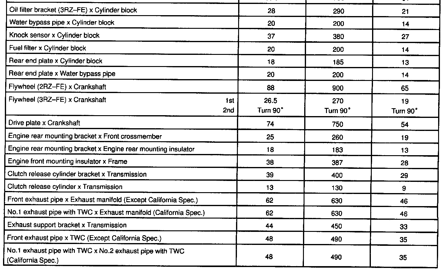 2RZ/3RZ-FE Engine Torque Cont.: