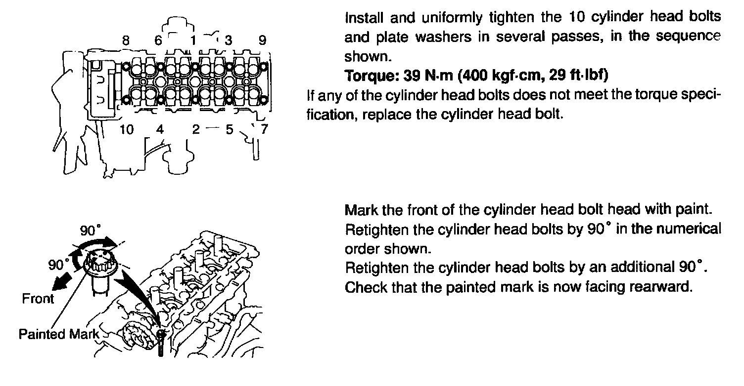 2RZ/3RZ-FE Cylinder Head Torque & Sequence: