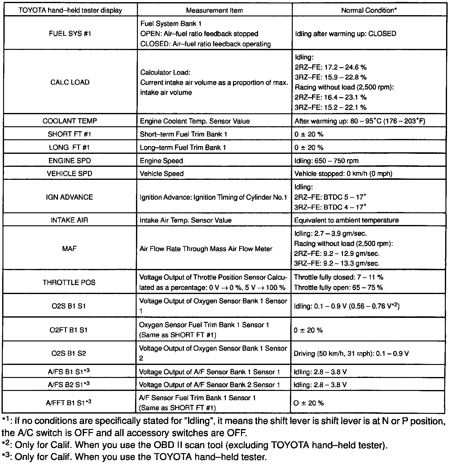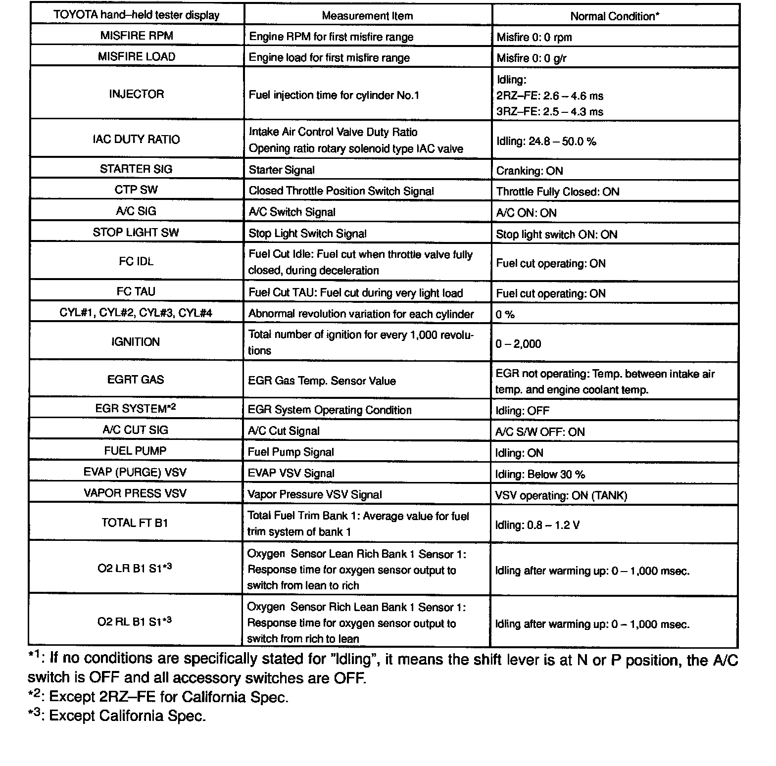 ENGINE OPERATING CONDITIONNOTE: The values given for "Normal Condition" are representative values, so a vehicle may still be normal even if its value varies differ from those listed here. So do not decide whether a part is faulty or not solely according to the "Normal Condition" here.