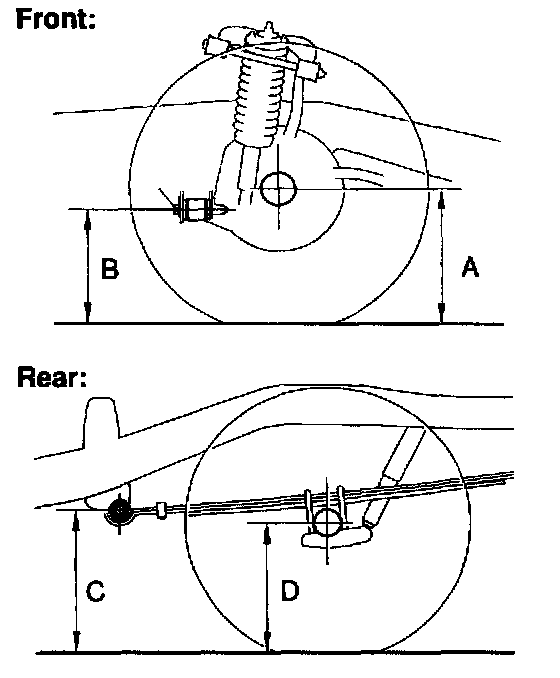 C: Ground clearance of leaf spring front hanger pin bolt center.