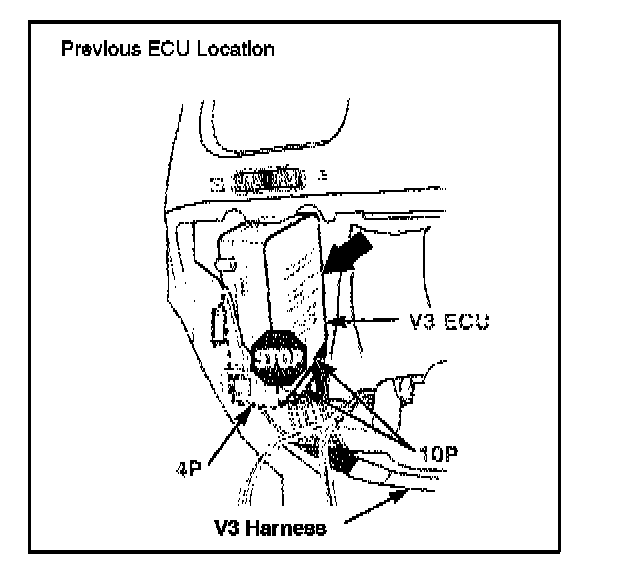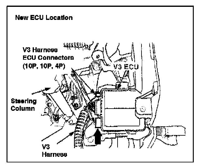 To improve mounting stability on 2000 MY Tundra vehicles equipped with a Post Production Option (PPO) or Dealer Installed Option (DIO); RS3000 TVIP, the location of the V3 ECU was changed from the left cluster panel to the vehicle instrument panel cross-member on the right side of the steering column. The mounting method has changed from butyl tape to a solid bracket screwed to the V3 ECU. Refer to the installation instructions for details on the installation.