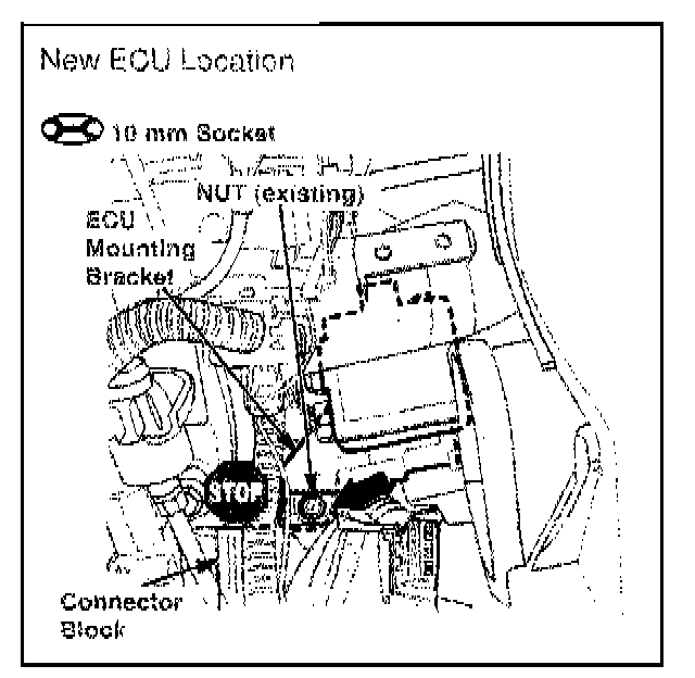 These illustrations call out the change in location and new mounting method of the ECU.