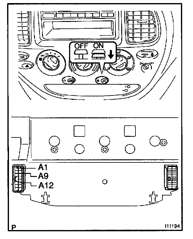 b. Push the A/C button in and check that the A/C indicator lights up.