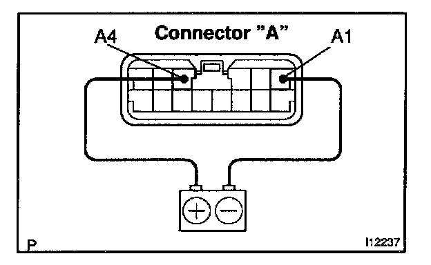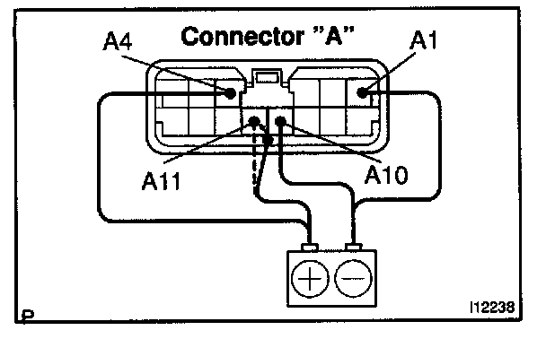 c. Connect the positive (+) lead from the battery to terminal A11 and negative (-) lead to terminal A10, then check that the indicator dimes.