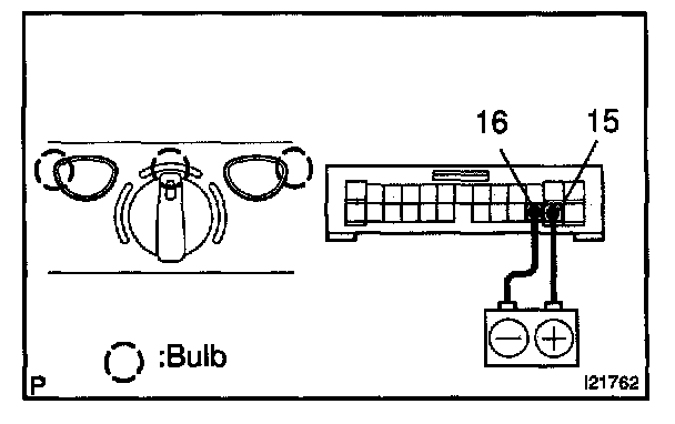 Connect the positive (+) lead from the battery to terminal 15 and negative (-) lead to terminal 16 then check that the illuminations lights up.