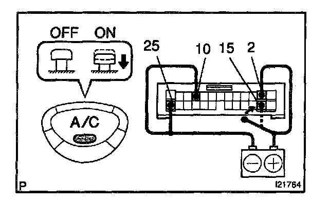 a. Connect the positive (+) lead from the battery to terminal 2 and negative (-) lead to terminal 10, 25 while press the switch.