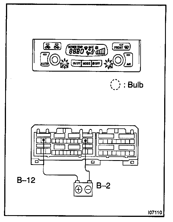 Connect the positive (+) lead from the battery to terminal B-12 and the negative (-) lead to terminal B-2, then check that the illumination lights up.