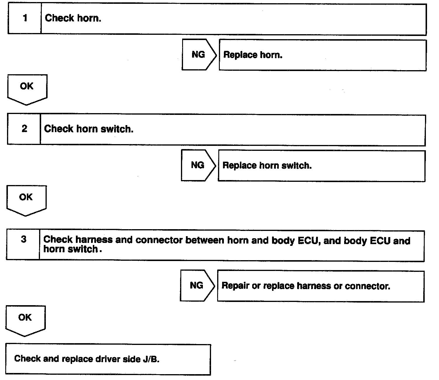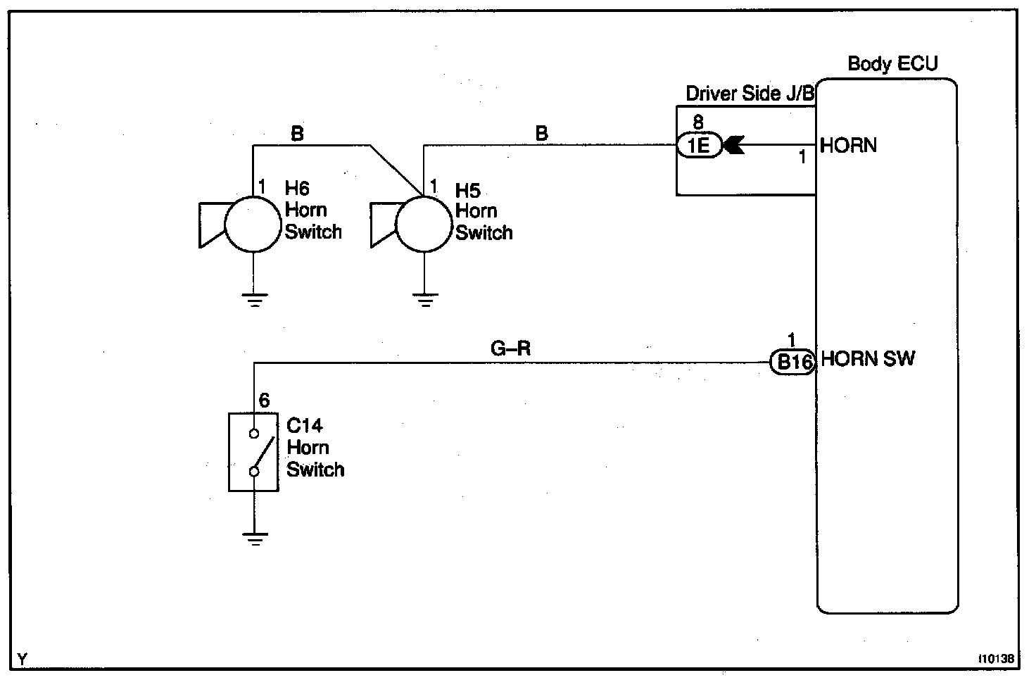 The horn is connected to the body ECU and activated by the body ECU during warning of the theft deterrent system and horn switch