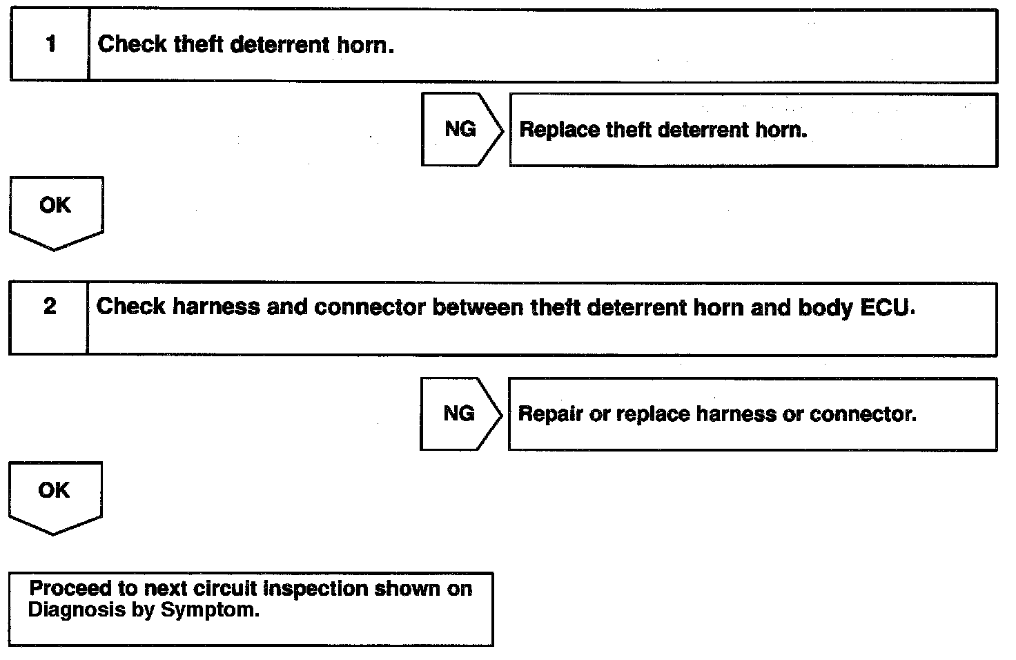 During warning of the theft deterrent system, the body ECU activates the theft deterrent horn.