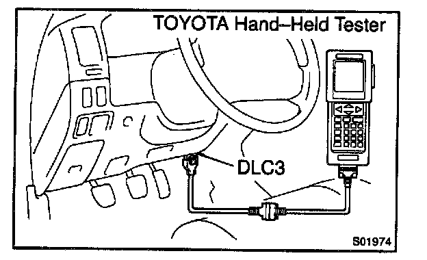 1. Connect the TOYOTA hand-held tester to the DLC3.