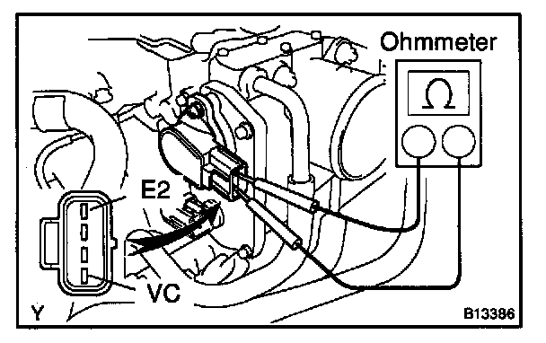 b. Using an ohmmeter, measure the resistance between terminals VC and E2.