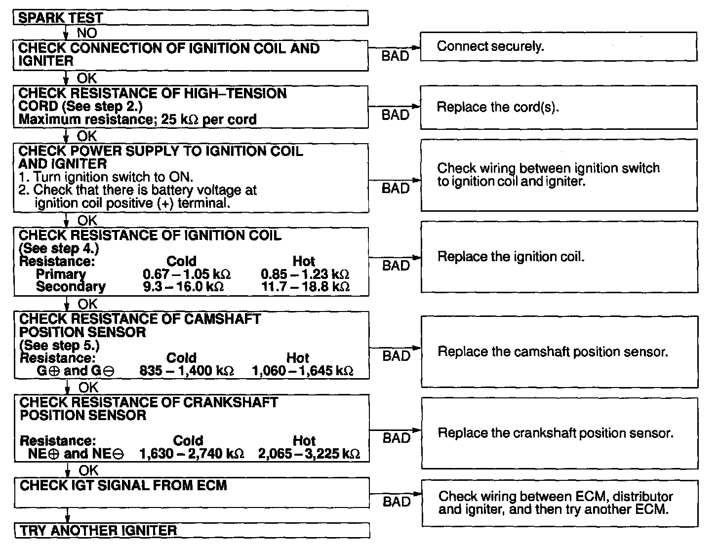 If the resistance is greater than the maximum, check the terminals. If necessary, replace the high-tension cord.