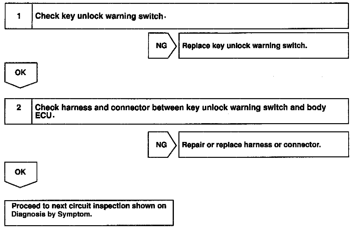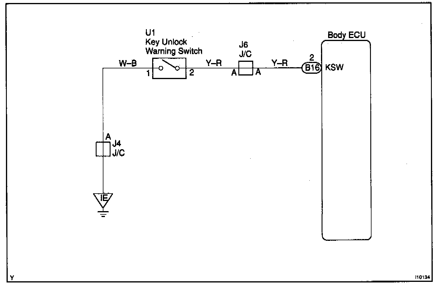 The key unlock warning switch goes on when the ignition key is inserted in the key cylinder and goes off when the ignition key is removed.