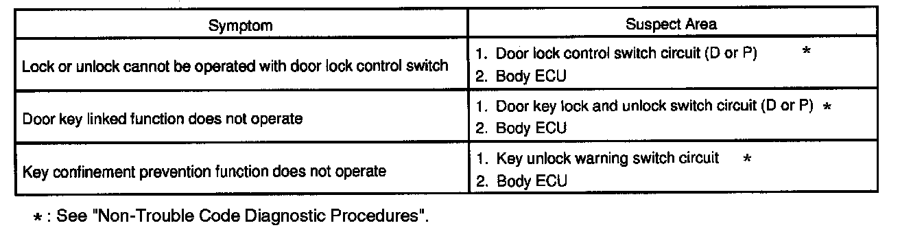 Problem Symptoms Table - Door Lock Control: