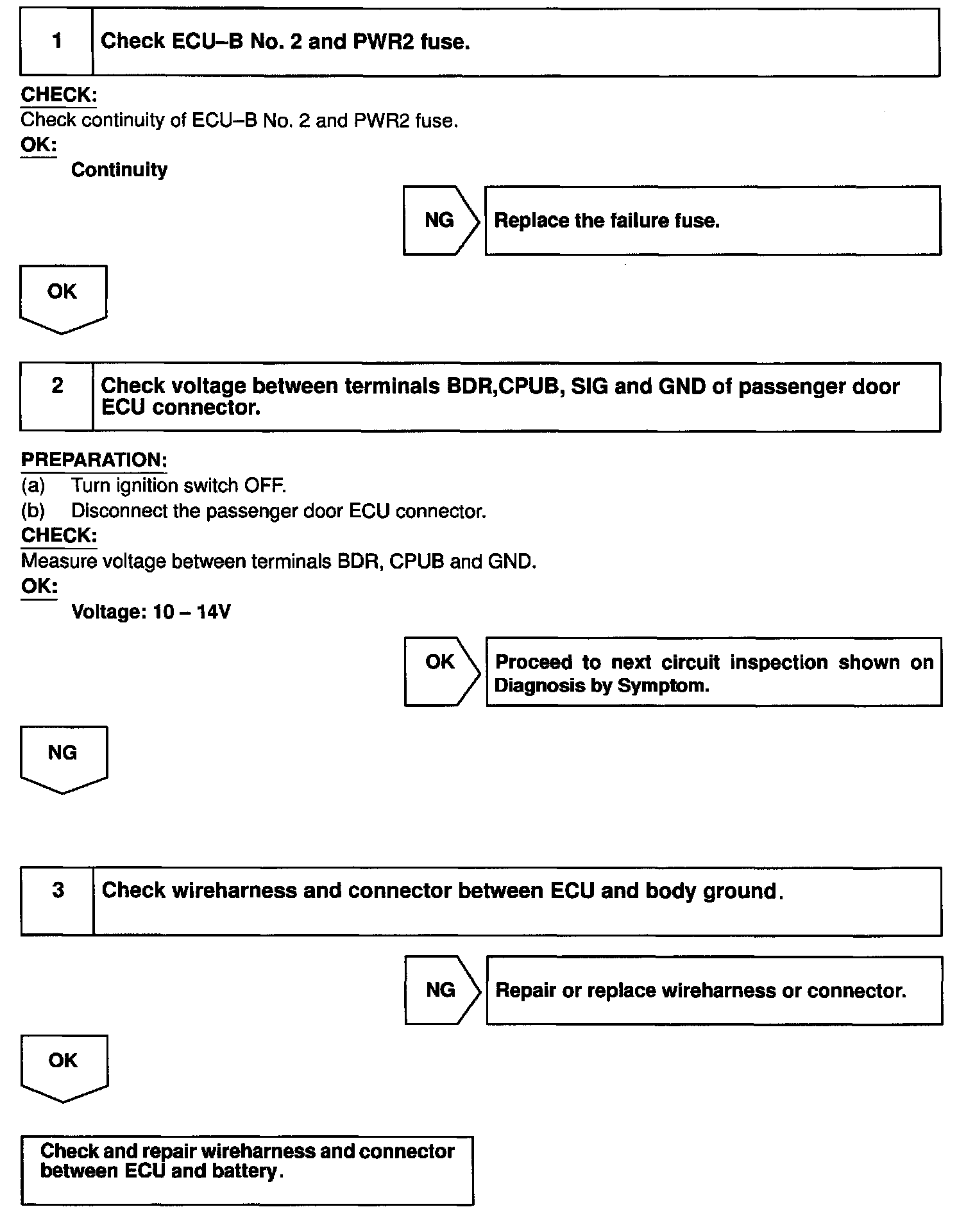 CIRCUIT DESCRIPTIONThis circuit provides power to operate the passenger door ECU.