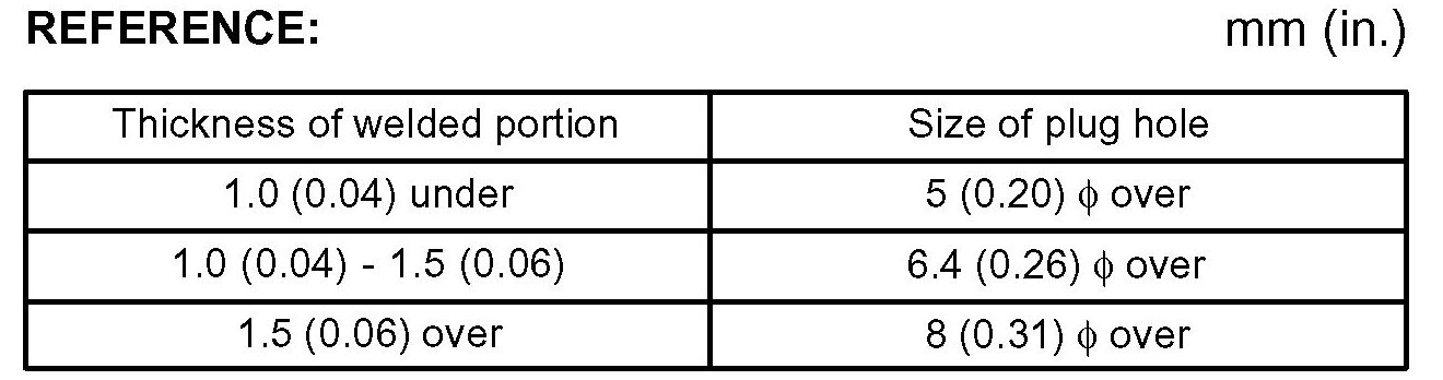 1. When welding panels with a combined thickness of over 3 mm (0.12 in.), use a MIG (Metal Inert Gas) welder for plug welding.