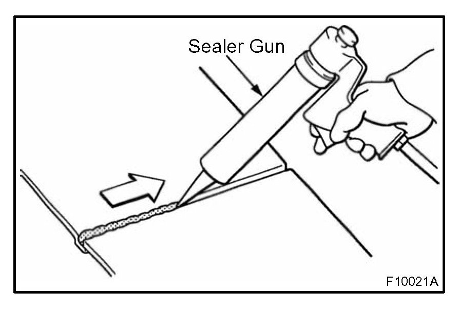1. For water-proofing and anti-corrosion measures, always apply the body sealer to the body panel seams and hems of the doors, hoods, etc.