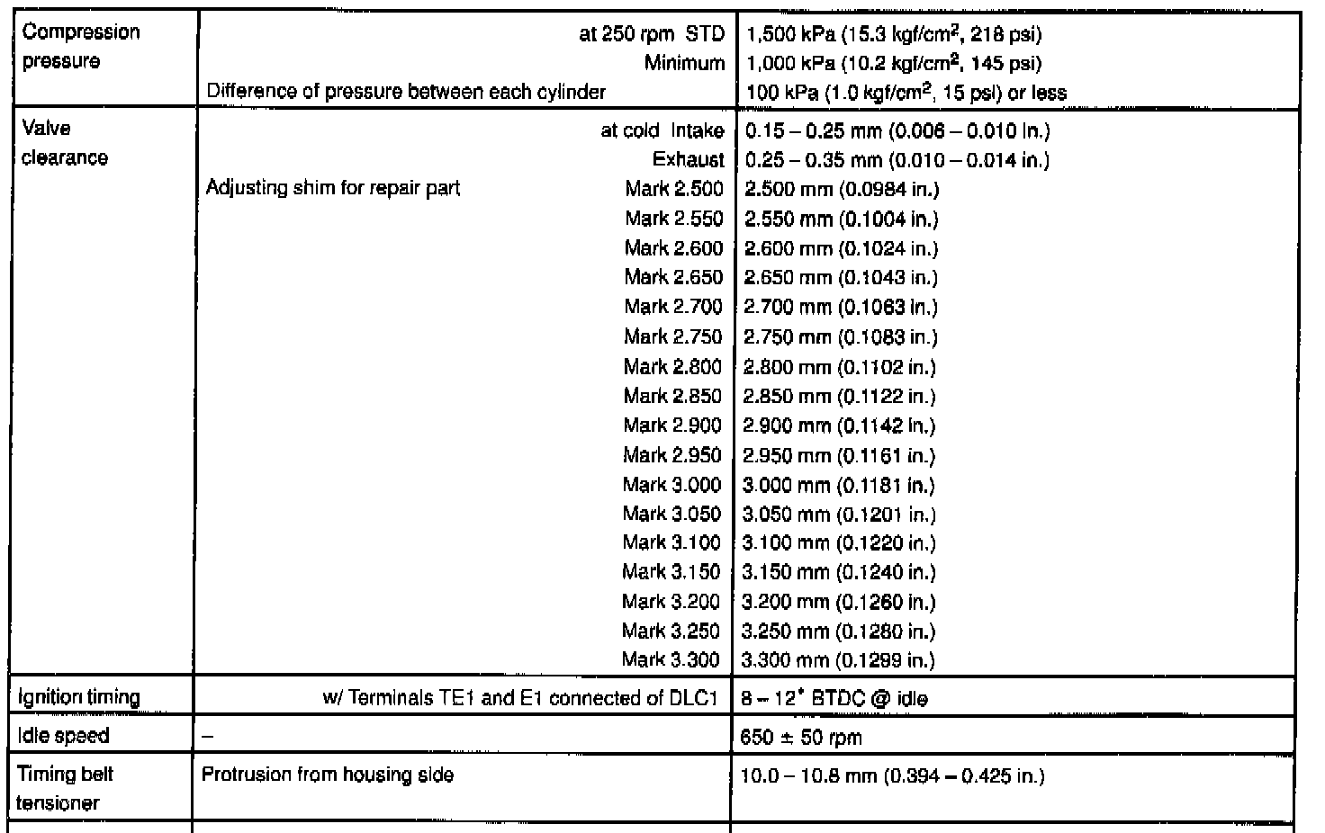 1MZ-FE Engine Mechanical Data: