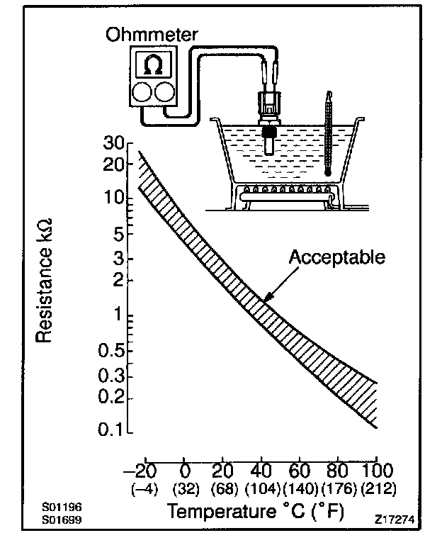 Coolant Temperature Sensor/Switch (For Computer): Testing and Inspection