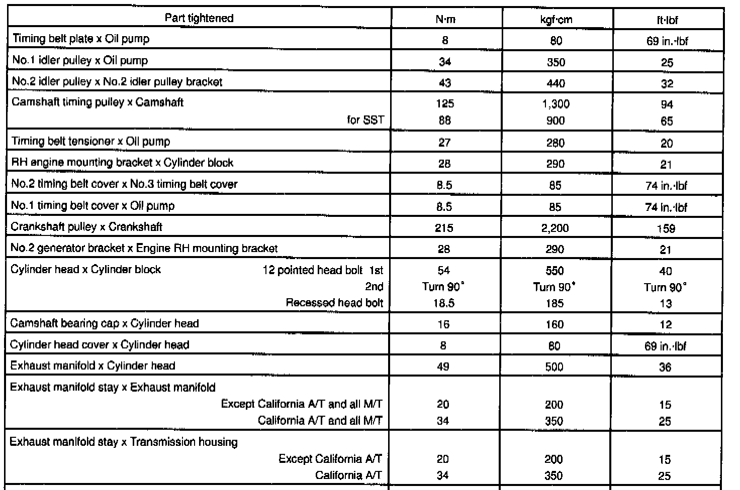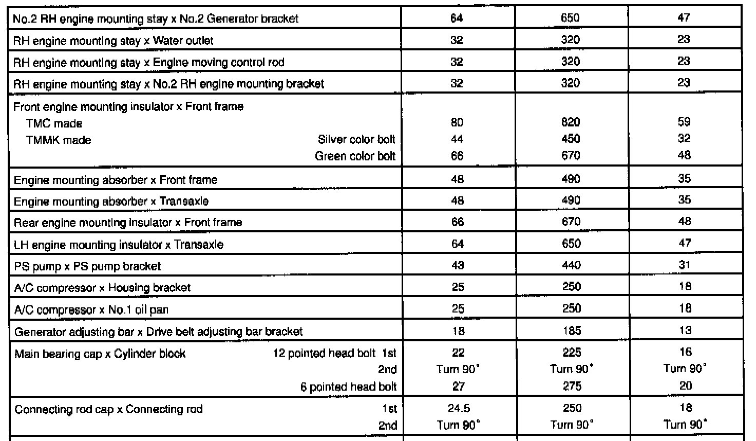 1MZ-FE Engine Mechanical Torque:
