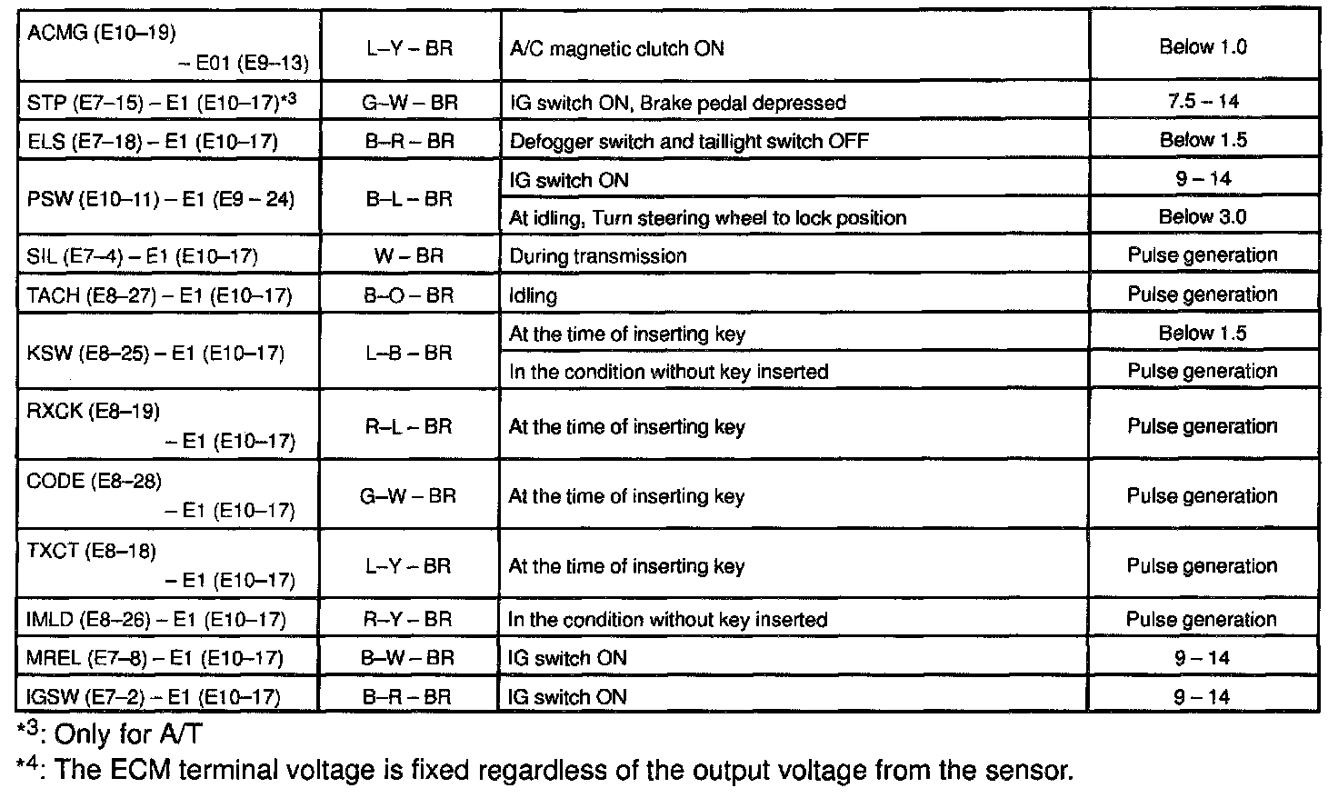 ECM (With Engine Immobiliser System) - Pinouts (Part 3):