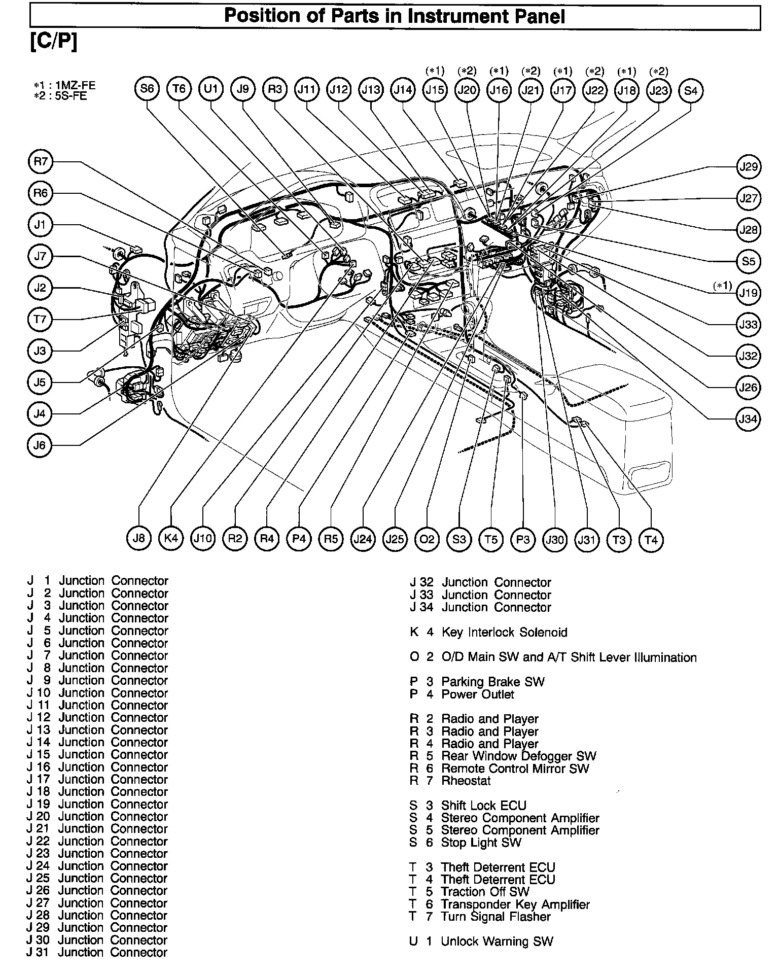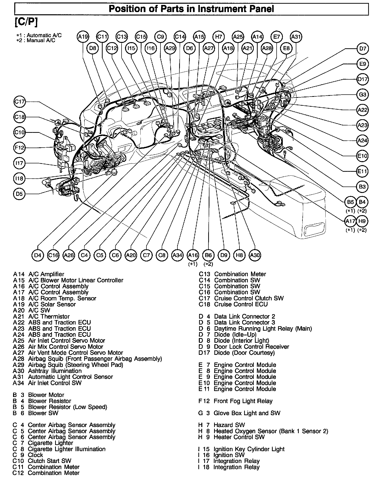 Position Of Parts In Instrument Panel (Part 1):