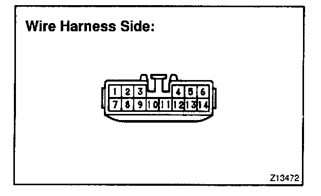 b. Connect the connector to amplifier and inspect wire harness side connector from the back side,as shown in the chart.