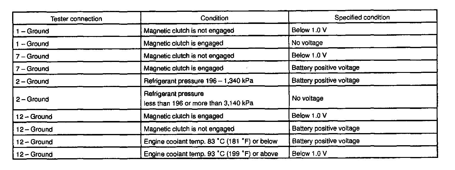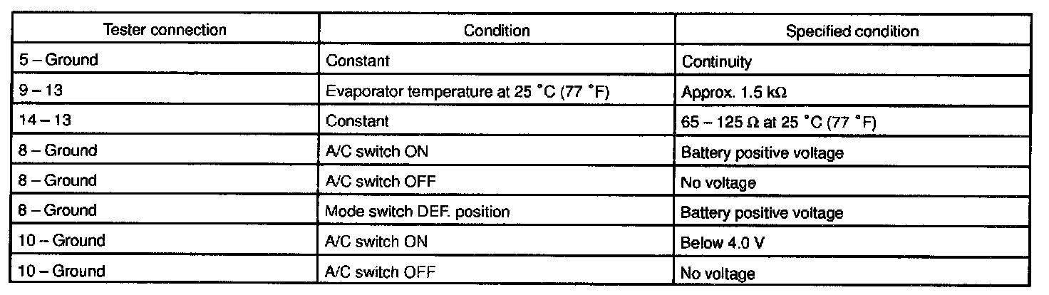 a. Inspect the amplifier connector on wire harness side as shown in the chart.