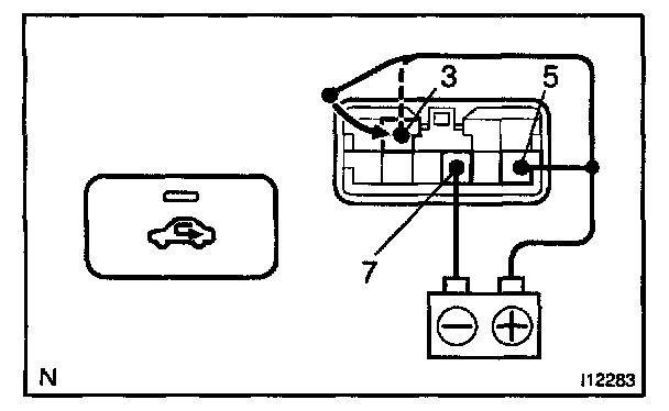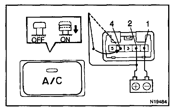 b. Connect the positive (+) lead from battery to terminal 4 and then check that the indicator dims.