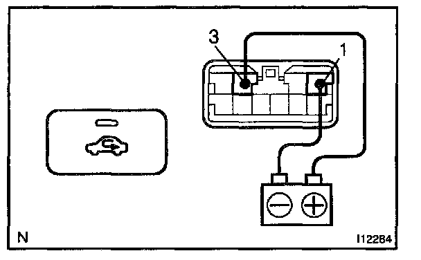 Connect the positive (+) lead from the battery to terminal 3 and the negative (-) lead to terminal 1, then check that illumination light up.