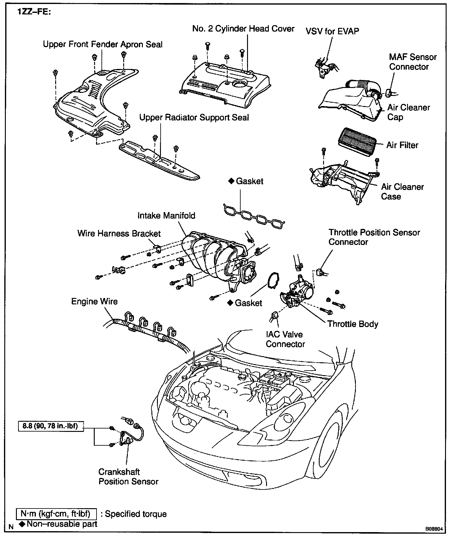 Torque: 8.8 N.m (90 kgf.cm, 78 in.lbf)