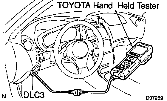 2. CONNECT TOYOTA HANDHELD TESTER OR OBDII SCAN TOOL