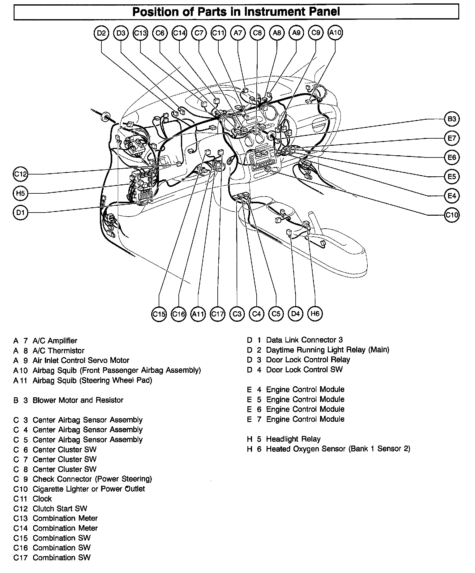 Position Of Parts In Instrument Panel (Part 1):