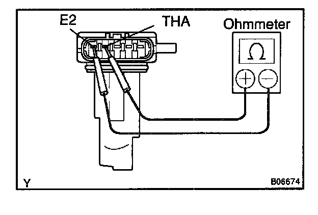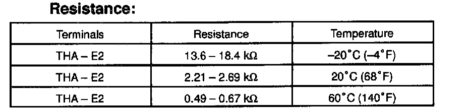 Using an ohmmeter, measure the resistance between terminals THA and E2.