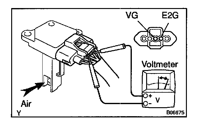c. Using a voltmeter, connect the positive (+) tester probe to terminal VG, and negative (-) tester probe to terminal E2G.