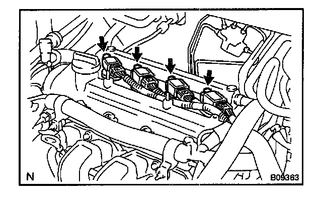 2. DISCONNECT 4 IGNITION COIL CONNECTORS