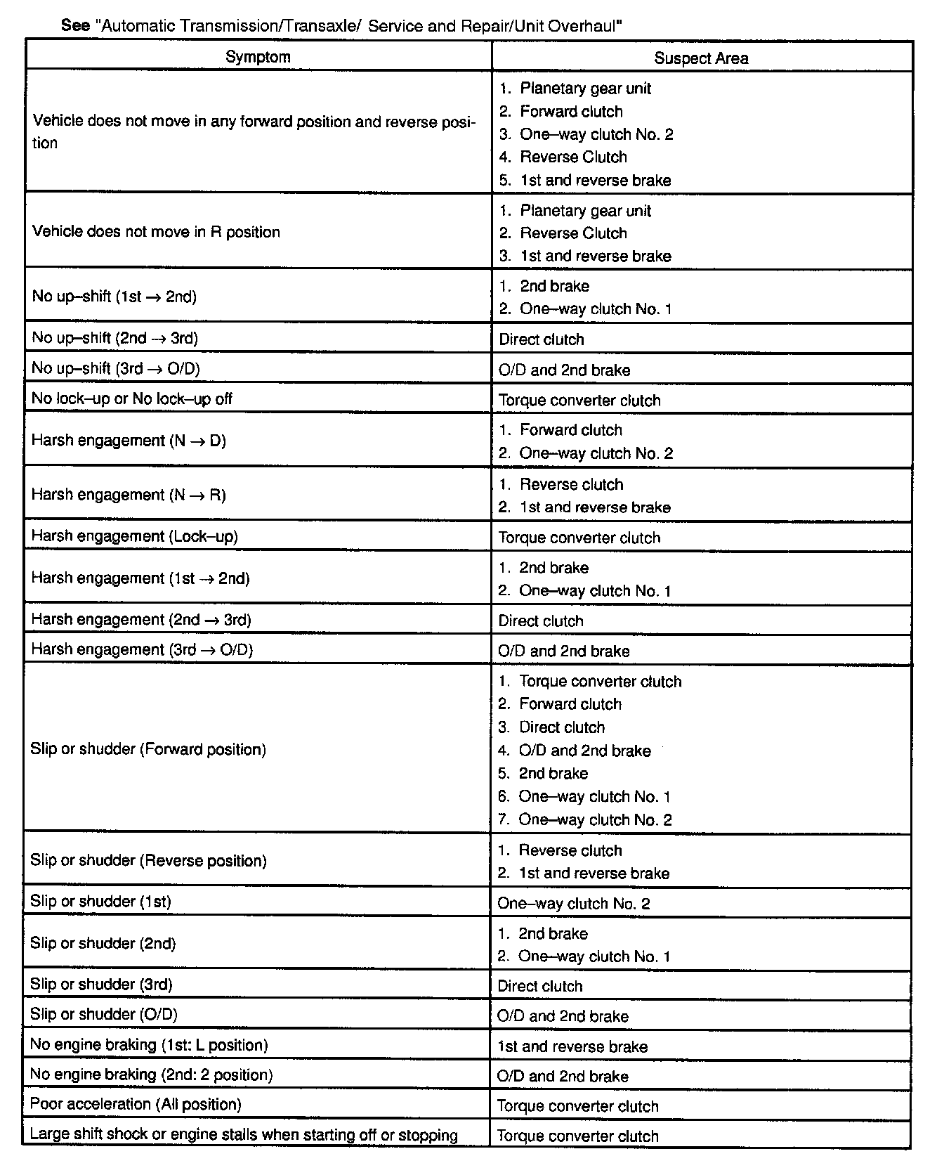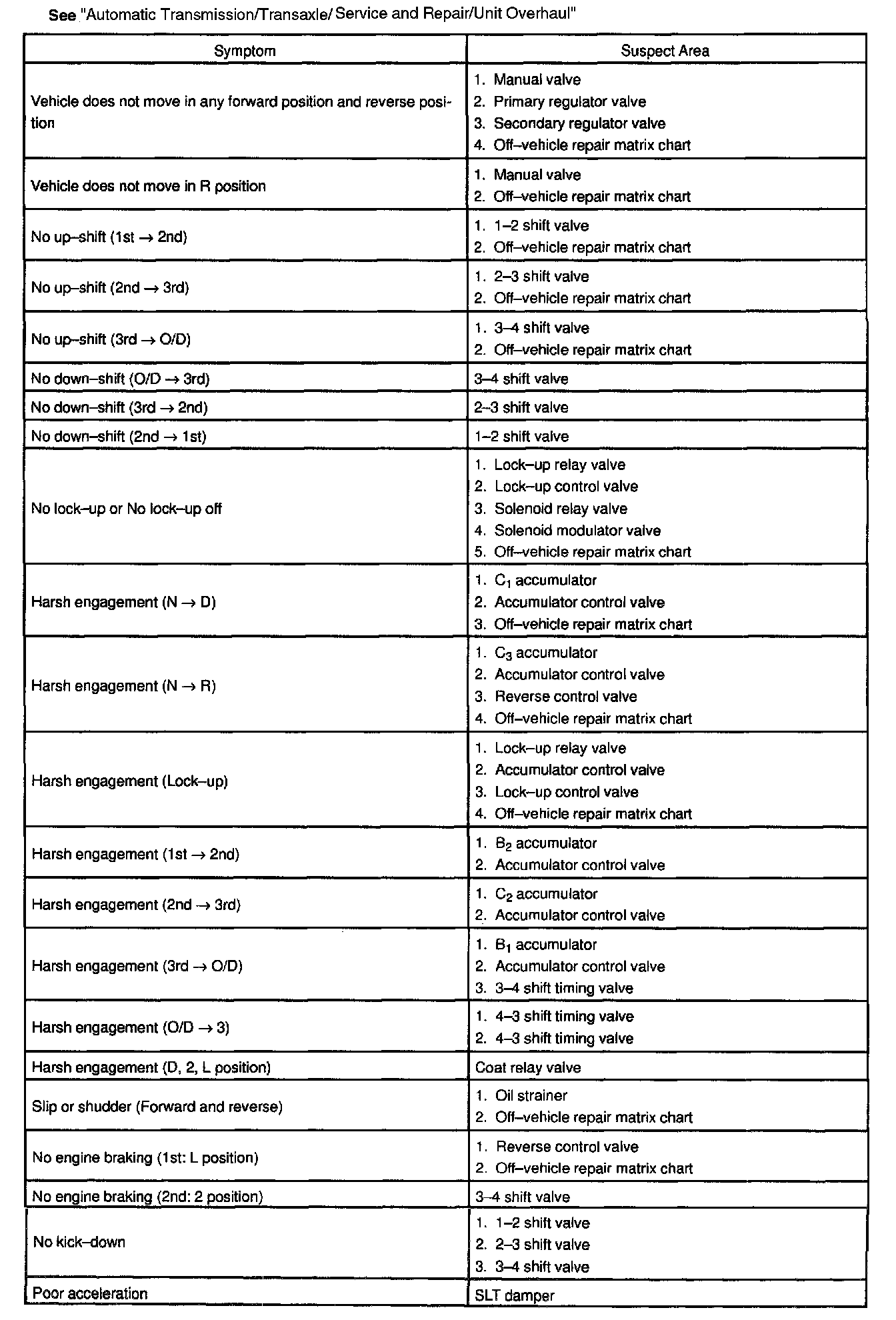 Chart 2: On-vehicle repair matrix chart