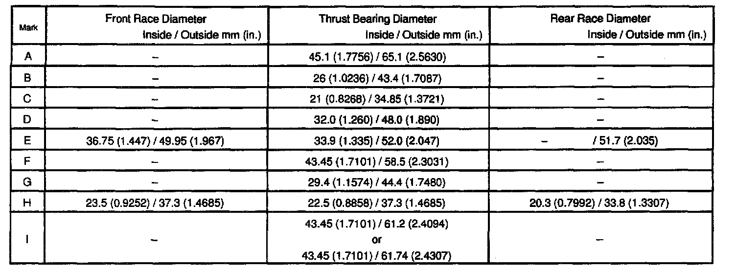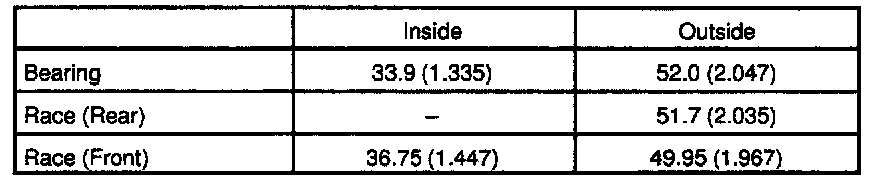 Bearing and race diameter: mm (inch)